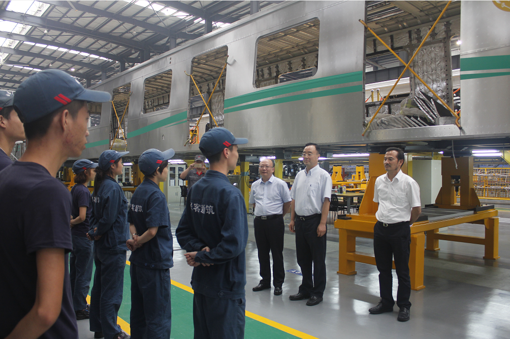 9月13日下午,四川省政协副主席、省轨道交通产业发展推进小组第一副组长高烽率队对公司轨道交通装备制造基地进行调研考察,详细参观了新筑轨道交通装备制造基地的车体车间、总装车间与静调车间,并在动调线乘坐体验了成都地铁4号线车辆。公司董事长黄志明、设计研究总院院长胡基士、副总裁衡福明、王斌、总裁助理吕强等陪同考察。