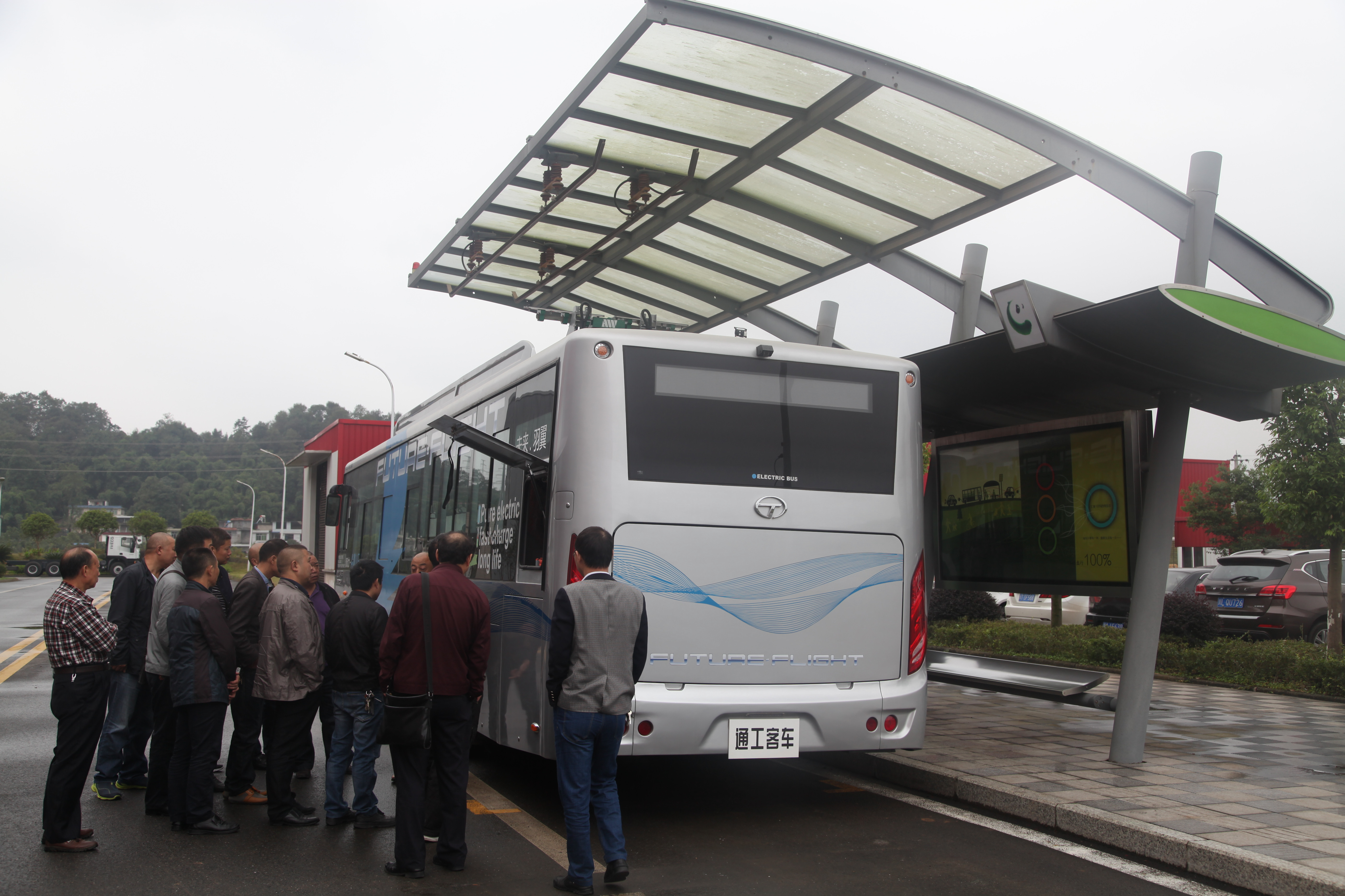 10月18日,中国西部第一条纯电动在线快充公交示范线即将在雅安7号线开通!新筑通工自主研发制造的六辆已获取正式“身份证”的纯电动公交车已换上新装,整装待发!昨日,雅安蜀通公司领导、公交车驾驶员等一行走进新筑通工公司,见到了即将与大家见面的六辆纯电动公交,车辆别具一格的外观,舒适的内部构造,让在场的驾驶员们爱不释手!