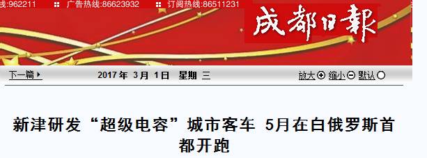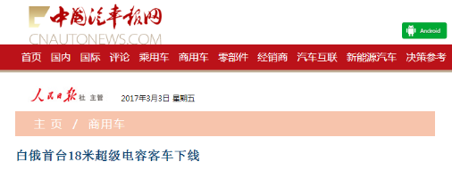 2月16日由新筑股份公司提供核心技术的首台18米超级电容城市客车在白俄罗斯首都明斯克正式下线,不知近几日大家是否也像小编一样,从各大媒体看到了这条新闻报道~