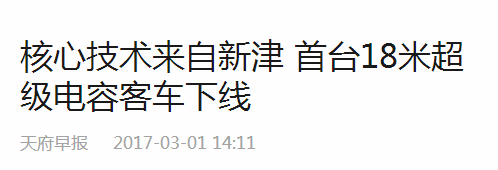公司研发的超级电容产品,已经达到世界领先水平,产品远销白俄罗斯、以色列、伊朗、奥地利等国家,商业化运营里程已超过一千万公里。