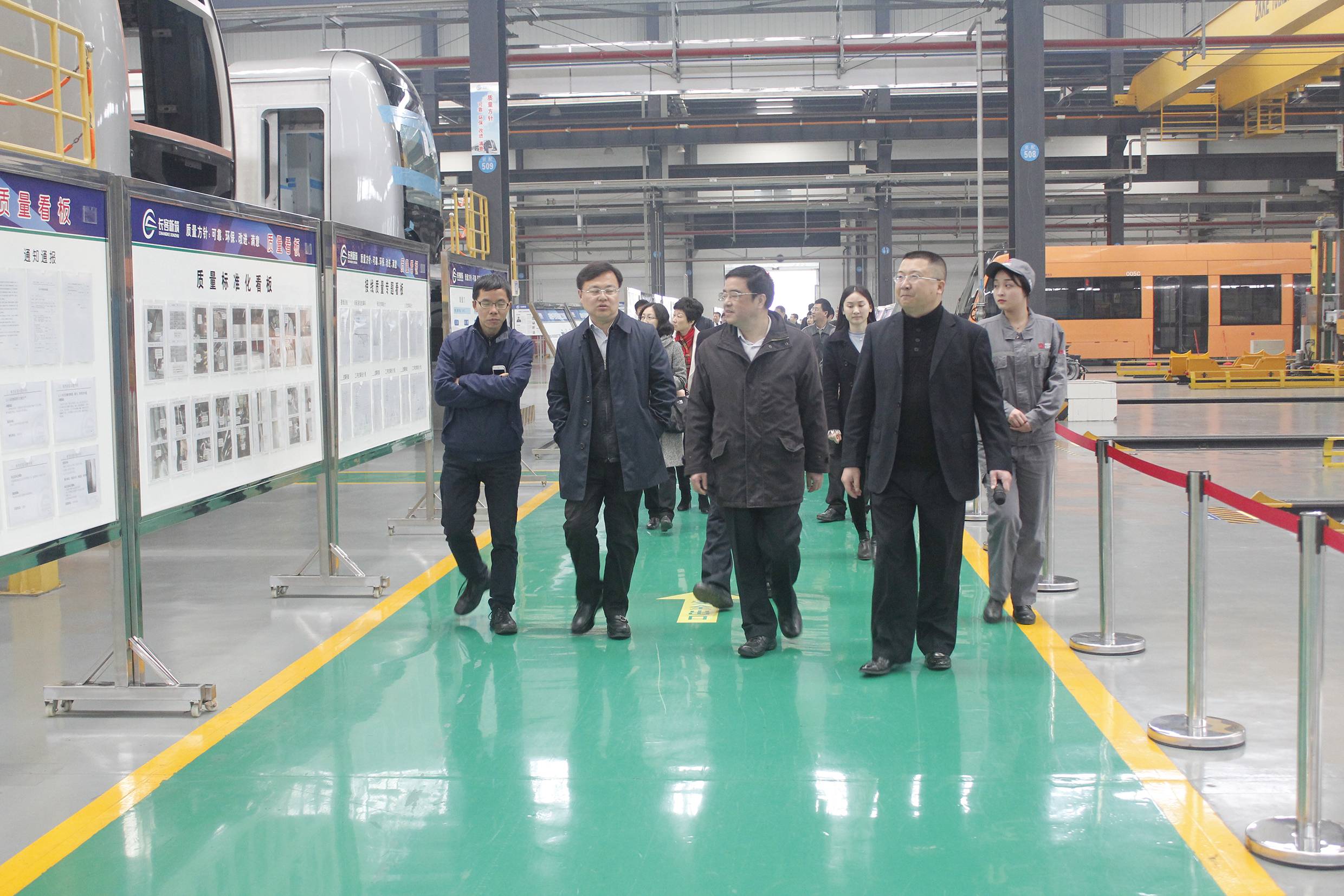 视察调研过程中,公司运营管理部副部长赵承君对公司产业发展模式与发展成果进行了专题汇报,对公司产业概况、科研能力、三大集成产品与新制式交通进行了系统介绍。调研组一行详细参观了新筑轨道交通装备制造基地的车体车间、总装车间与静调车间,了解了基地车辆生产线相关情况。