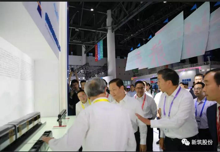 9月21日,四川省委书记彭清华、省政府副省长彭宇行率队到“国有企业一带一路合作展示馆”现场,巡视展馆的布展、参展情况。四川省委书记彭清华听取了新筑股份轨道交通产业发展的详细汇报,着重了解了新筑股份内嵌式中低速磁浮交通系统(超铁)的技术优势、与德国博格公司的合作情况及模拟运营综合示范线的建设情况。