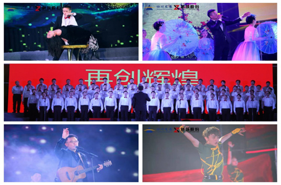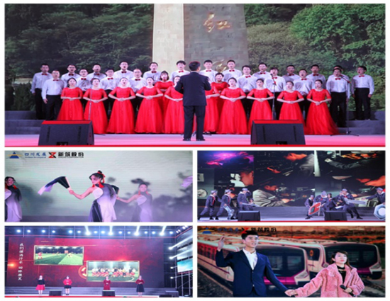 第一篇章,扬帆五津。联合工会、长客新筑工会、工程构件事业部工会通过合唱、舞蹈、朗诵、情景剧展现了新筑股份创业之初,新筑人艰苦奋斗、追逐光荣、坚守梦想的精神。