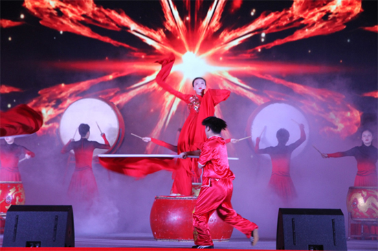 作为开场节目的《旗舞飞扬》,其宏大的旗鼓舞场面瞬间带动了现场热烈的氛围,拉开了团拜会文艺汇演的序幕。