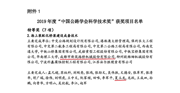 近日,中国公路学会对“2019年度中国公路学会科学技术奖”各奖项进行颁发,新筑股份所参与的海上装配化桥梁建设成套技术项目荣获特等奖,被授予特等奖证书。