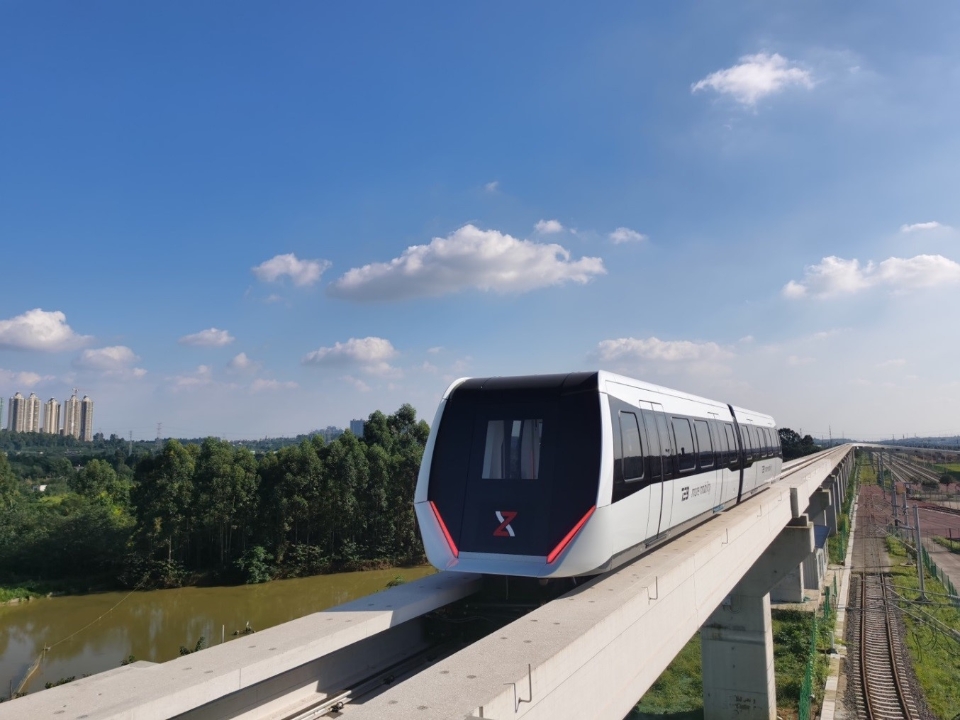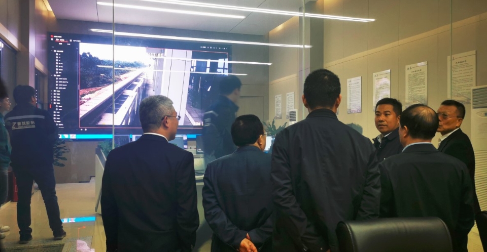 与会交流前,郑浩剑副总裁一行前往新筑股份投资建设的内嵌式中低速磁浮系统综合试验基地,参观了运行控制中心和磁浮车辆调试运行。