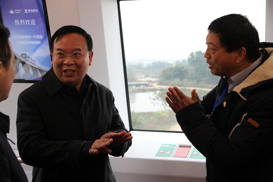 杨洪波副省长首先来到新筑股份普兴轨道交通产业基地,视察了新筑股份内嵌式中低速磁浮综合试验线,详细听取了试验线建设情况和磁浮车辆性能等方面讲解,并试乘体验了内嵌式中低速磁浮交通系统。