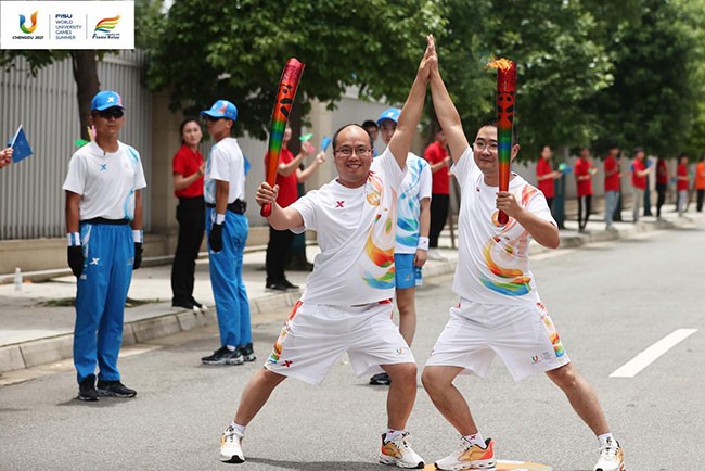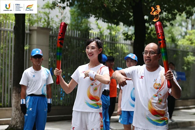7月14日,成都第31届世界大学生夏季运动会第三个火炬传递日启动。大运会火炬传递在西南财经大学(柳林校区)、四川交通职业技术学院、成都中医药大学(温江校区)、四川农业大学(温江校区)和成都工业学院五所高校进行。成都市新筑交通科技有限公司(以下简称“新筑交科”)员工刘庆中作为第144棒火炬手在成都工业学院站顺利完成火炬传递。