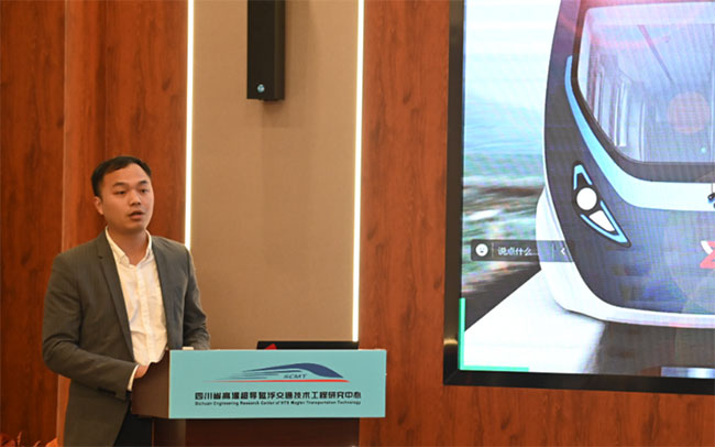 当天下午,工程研究中心举办了磁浮工程化应用的学术研讨会,交大设计院、中车主机厂、川发磁浮、绵阳巨星、中铁二十三局等十家单位开展了专题学术报告。四川发展磁浮科技有限公司邱飞力在会上做专题学术报告,汇报了内嵌式磁浮交通系统在工程化应用优化方面的工作,让磁浮交通领域专家更加了解内嵌式磁浮交通系统的技术优势和创新进展。