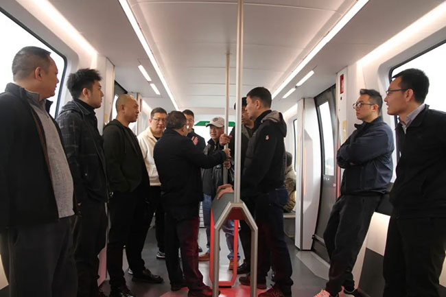 新筑股份党委书记、董事长肖光辉,新筑股份川发磁浮公司董事长唐林,长客新筑公司副总经理兼总工程师王雷陪同巴尔塔别科夫·阿尔达克董事长一行参观了新筑股份整车制造基地车辆车体车间、车辆装配车间和磁浮综合实验基地,并试乘体验了三编组磁悬浮车辆。