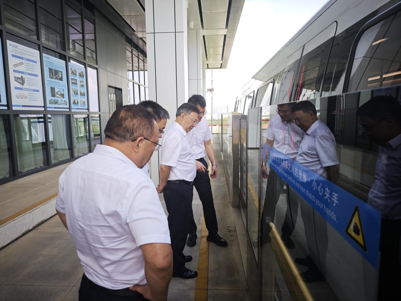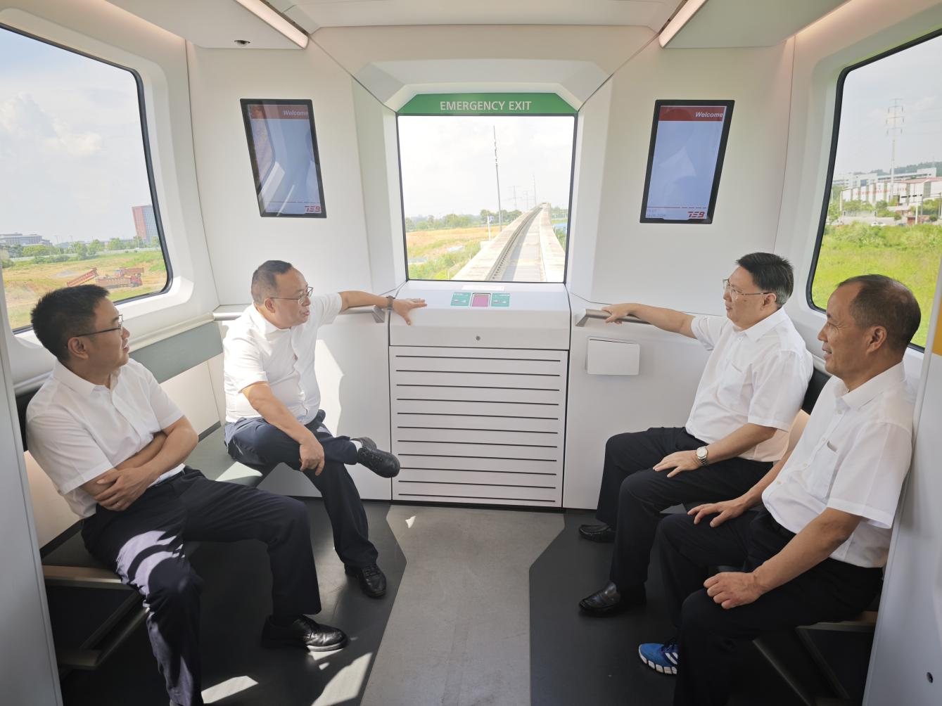 随后,丁应虎副书记一行来到新筑股份磁浮综合试验线基地,试乘体验了三编组内嵌式中低速磁浮列车。