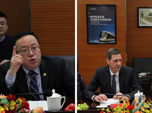 Director and CFO Jia Xiuying,Vice President Wang Bin and Vice President Xia Yulong form Xinzhu,Dr.Bert Zamzow,Director of Maglev Technology R&D Dept.,and Dr.Liu Bing,General Manager of China and Manager of Chengdu Maglev Project from Bögl,accompanied.