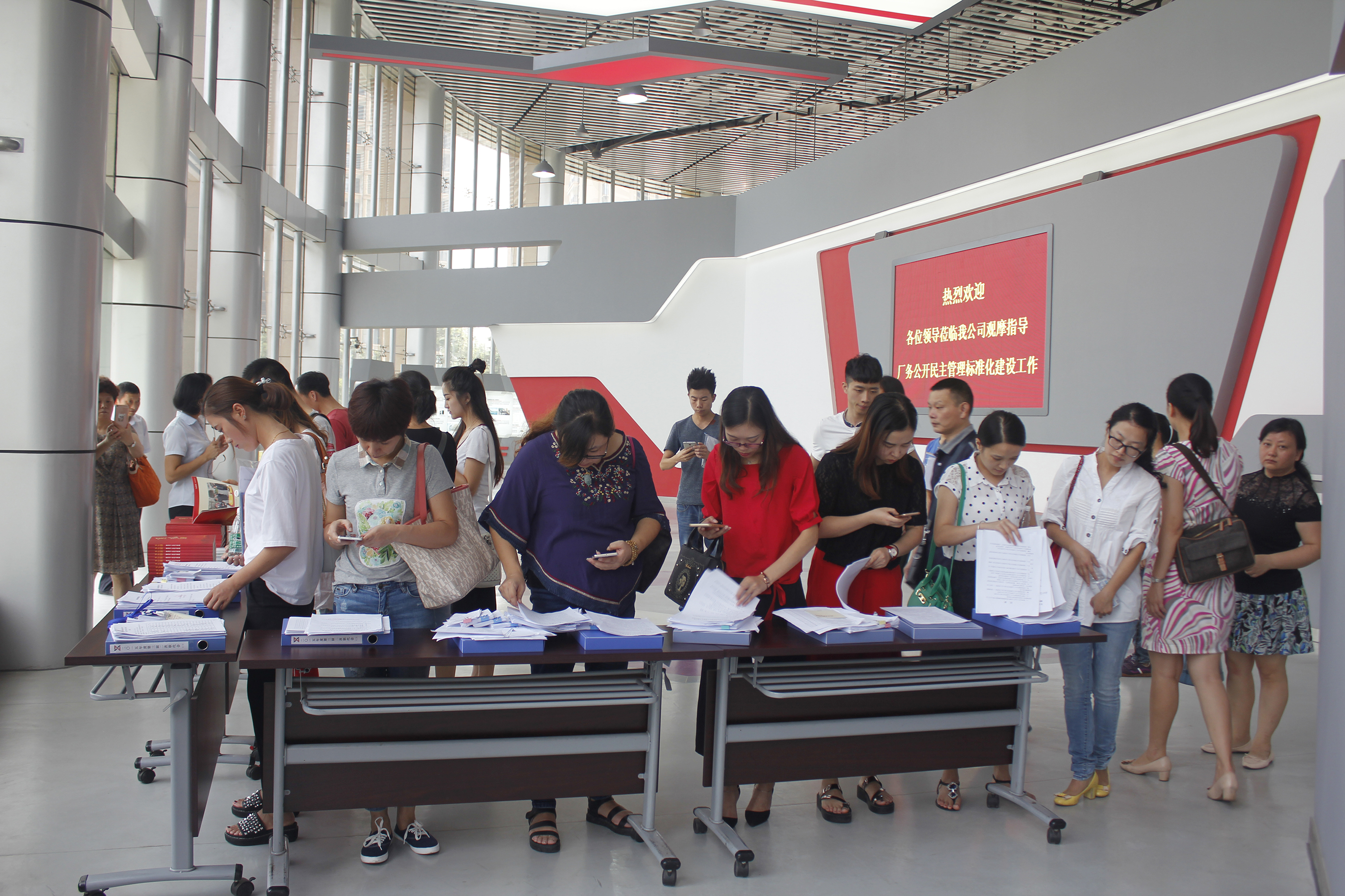 考察团一行80余人实地参观考察了公司展厅以及厂务公开栏,查看了公司厂务公开民主管理标准化建设工作资料,并与新筑公司工会主席等做进一步沟通交流,对公司厂务公开民主管理综合标准化工作给予了充分肯定。