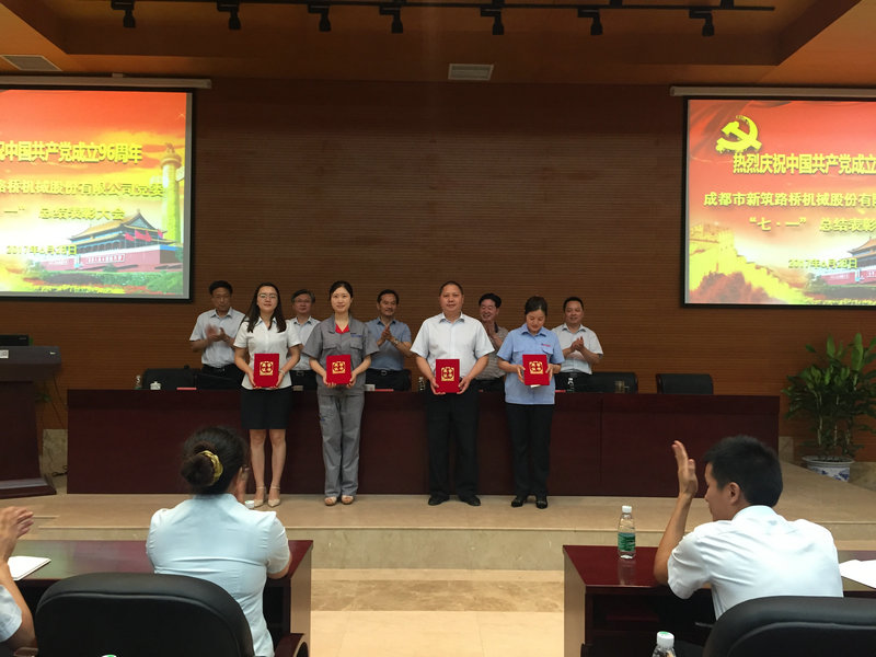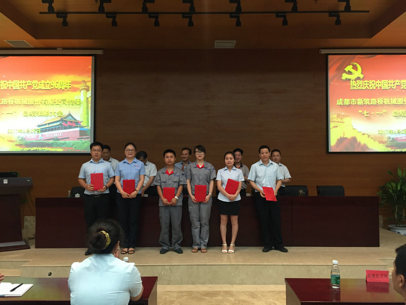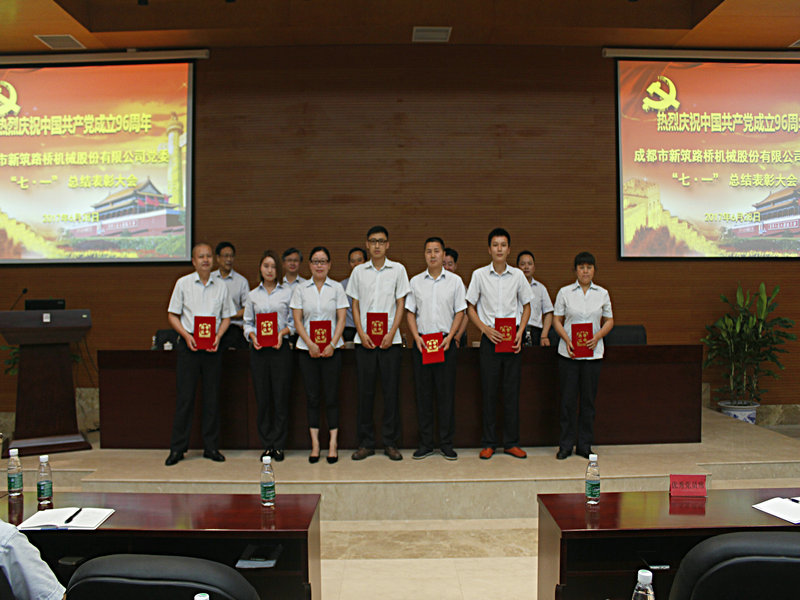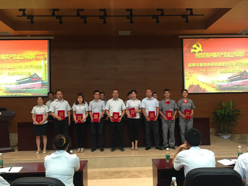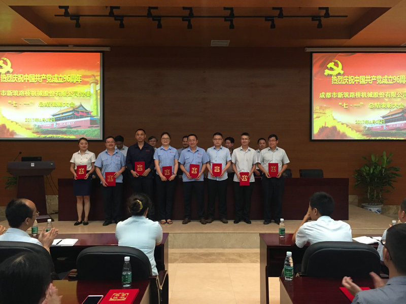 在七一建党节来临之际,6月28日上午,新筑股份公司党委在223会议室隆重召开了庆祝中国共产党成立96周年暨新筑股份公司“七·一”总结表彰大会。新津县委“两新”党工委第一副书记陈玉彬、公司董事长黄志明、公司党委书记王斌、公司党委副书记张宏鹰、公司党委副书记江蔚波、党委委员、各党支部书记、党员代表等共计百余人参会,会议由党委副书记江蔚波主持。