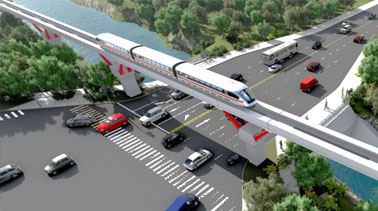 ● 车辆在轨道梁内包裹运行电磁辐射无外部影响